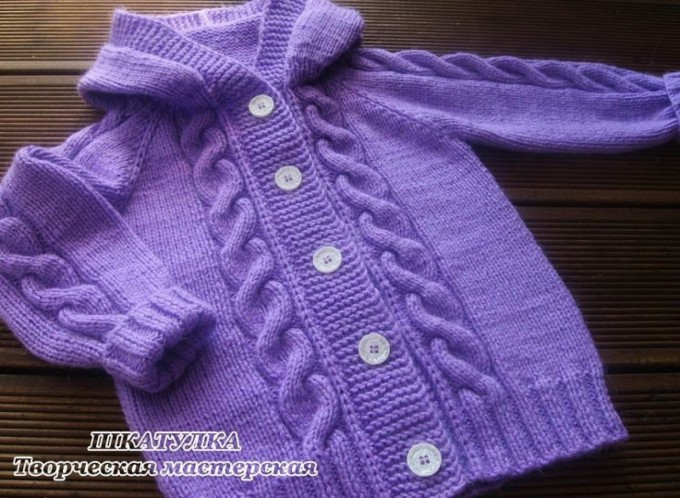 70 loops are started. A 50 cm 1 + 1 tire is woven. When the length of the body is 17 cm, 3 + 2 + 1 loops are cut from the sides for the armhouse. Weaving another 16 cm, the remaining loops are cut and finished in one go.