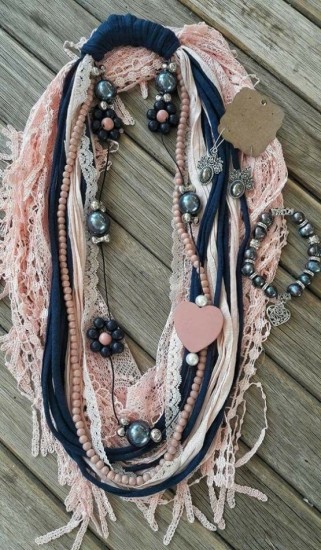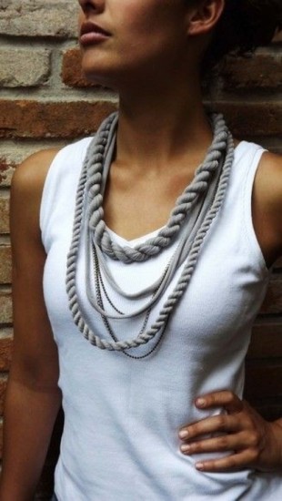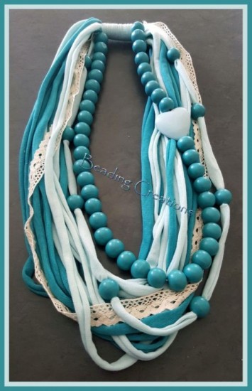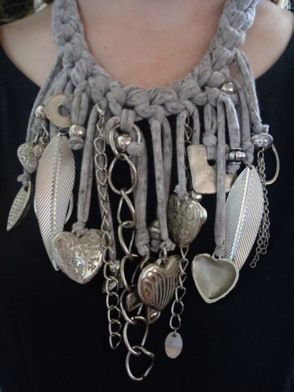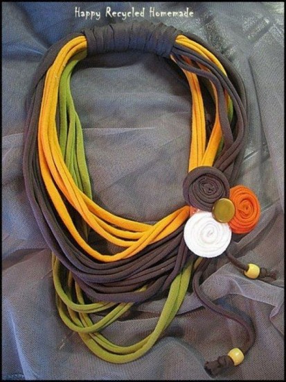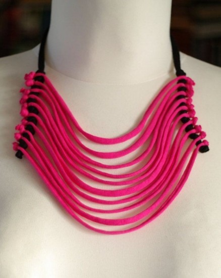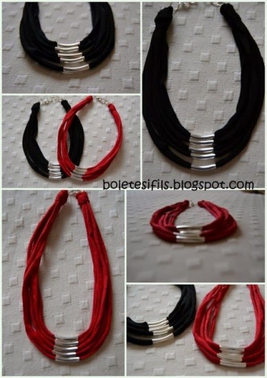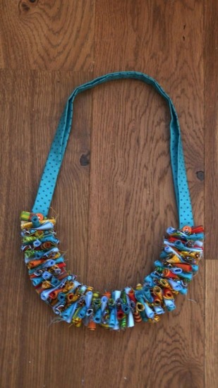 Each kit comes with enough thread to make a necklace and 5 colors available. The threads used are unused t-shirts and similar unnecessary material threads.