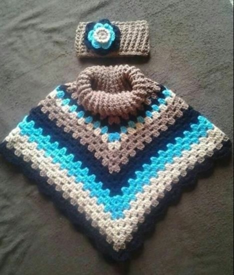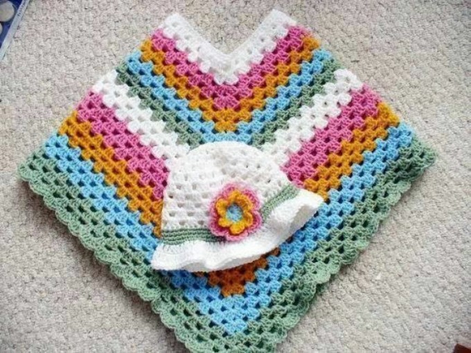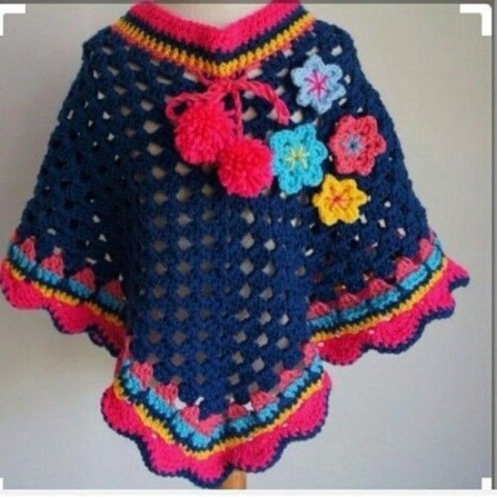 Many designs in ponchos are made with the same repetition of points, many others are made with different types of points, remember that there are designs with original edges, which are achieved even using another material, some works surprise by the use of figures in relief They are usually flowers, but you can make bows and animal faces, the most original ponchos usually have hats with ears.