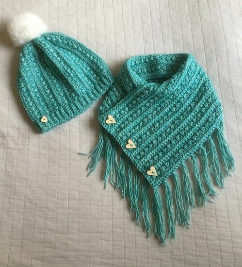 Sometimes it is great to coordinate crocheted hats and scarves, these with the same colors and details, the edges when it comes to scarves are decisive, some are with openwork points and others with fringes, bows, flowers and many other figures are usually added to the hats, many great light scarves in coordination with a headband, all these combinations bring originality to your pieces.