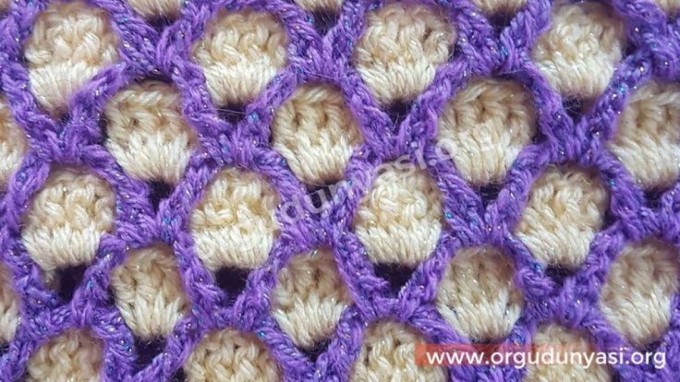 We completed the 6th row including the chains we made in the fifth row and making 4 handrails without making a chain between them.