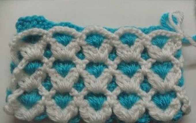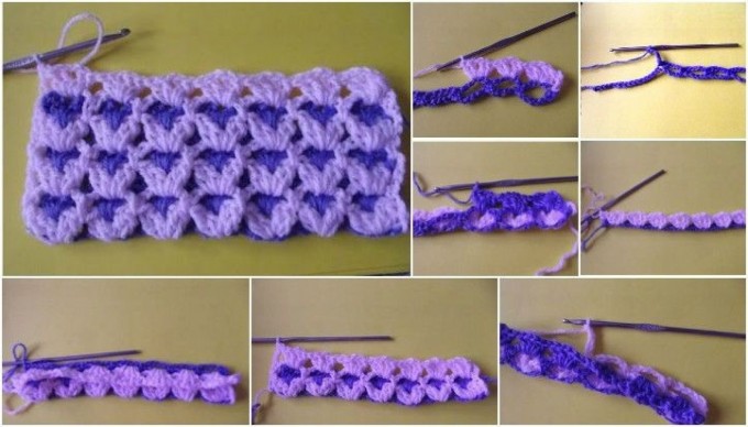 We start with a straight chain. When we complete the row, we pull 5 chains in the second row and collect them once.