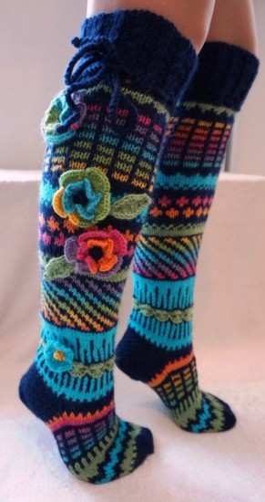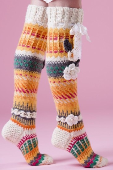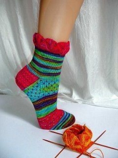 It is very easy to knit and wear, and it is easy to make a pattern of colored and open stitch women's socks.