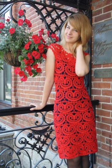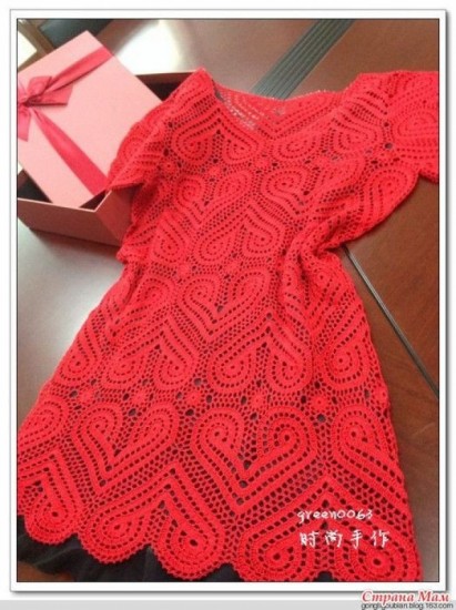 Very stylish dress pattern made with heart lace motif.